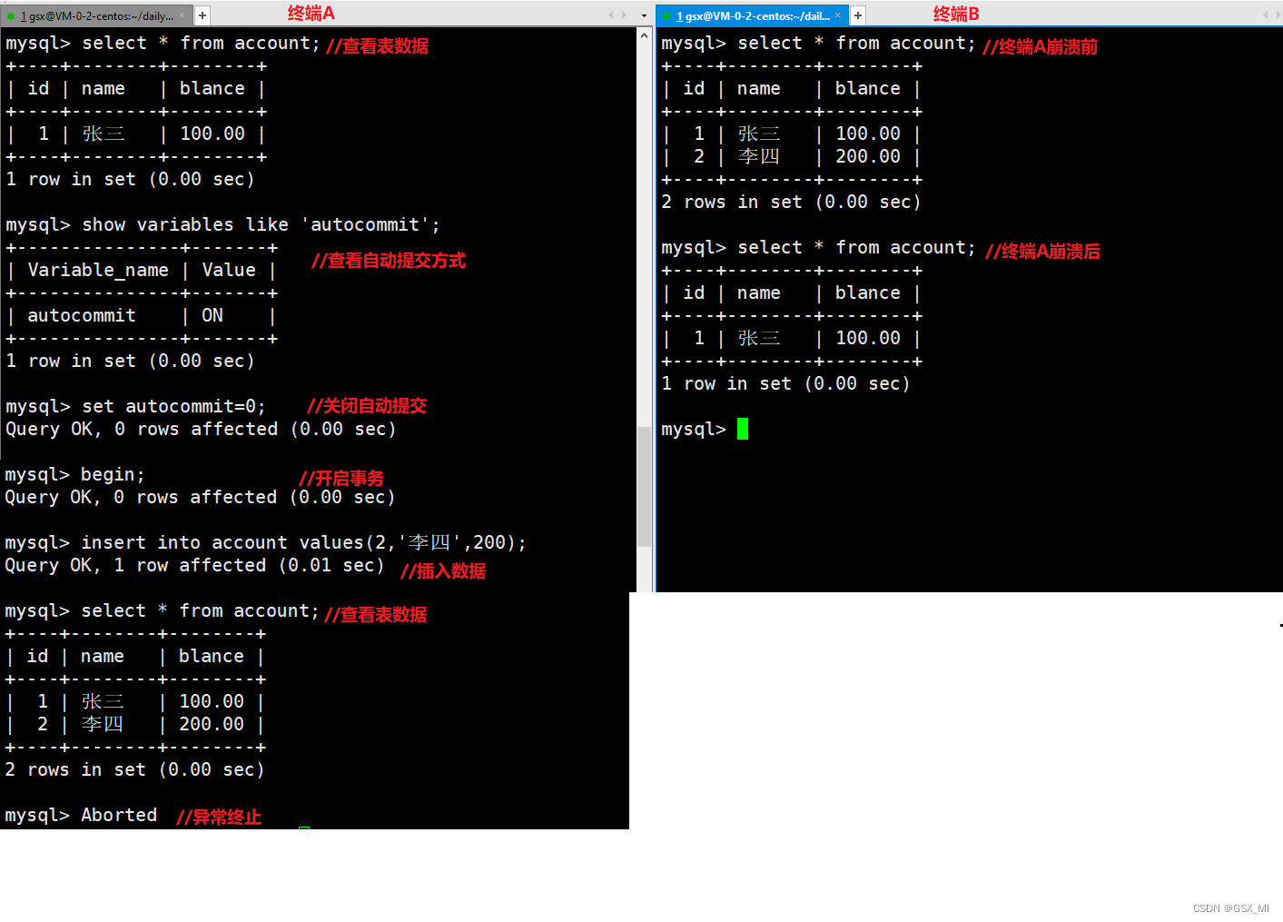(5)abnormal demonstration2 - 证明commit了,客户端崩溃,MySQL数据不会在受影响,已经持久化