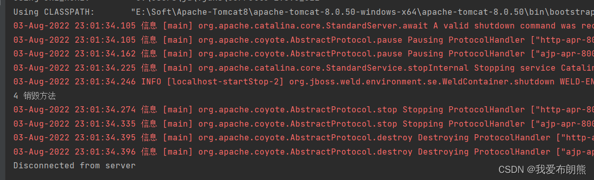 第四步:执行destroy销毁方法(只有在web工程停止的时候才会执行)