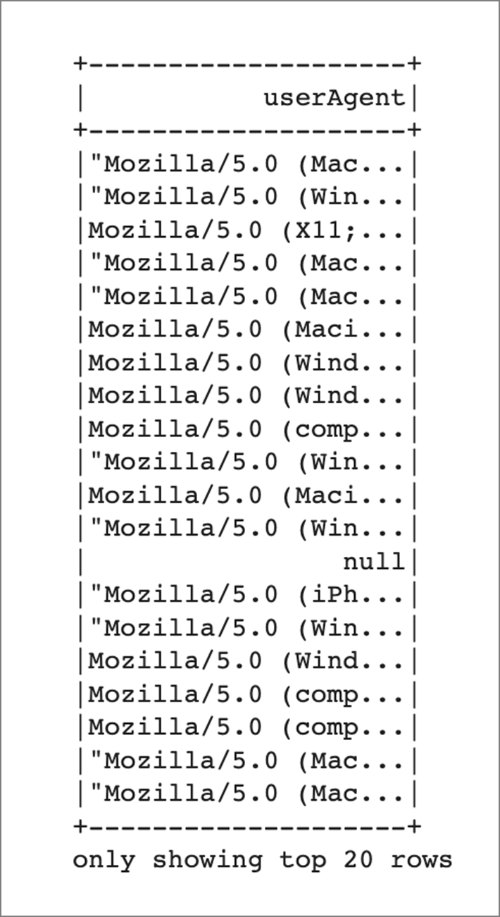 df . select(F . max(df . ts), F . min(df . ts)) . show()