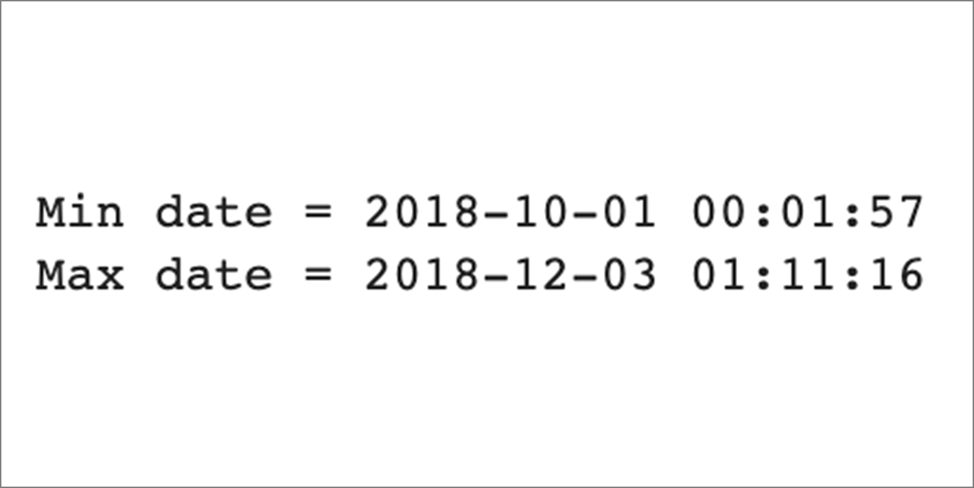 print("Max date =", datetime.fromtimestamp(1543799476000 / 1000))