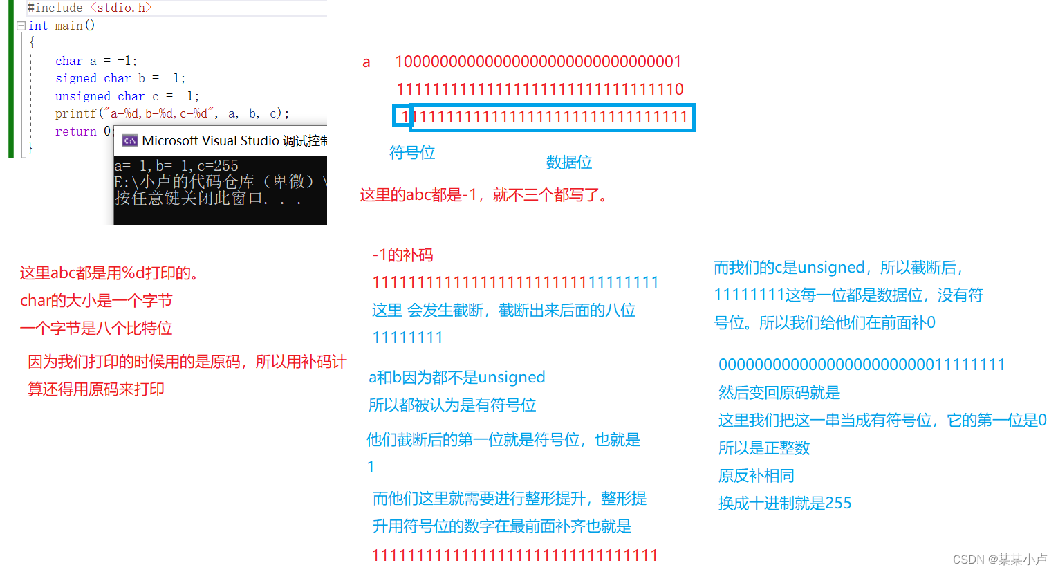 这里比较关键的是:Integer data is stored and calculated using two's complement,The original code is used when printing