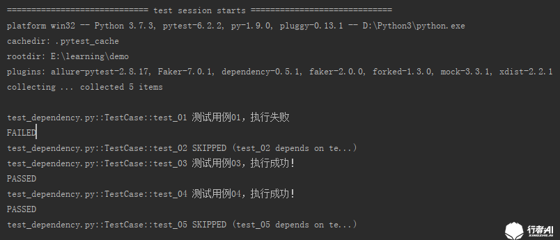 我们可以看出,只有依赖用例执行成功时,当前用例才会被执行,否则会被跳过.依赖多个用例时,只有全部成功,才会执行,否则一样会跳过.