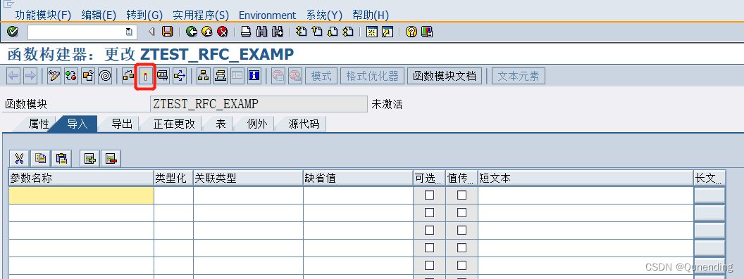 遇到这个警告确认功能模块和函数组的第一位都是Z开头,确认没问题点击勾,这样就创建了一个空的接口,此时是未激活状态