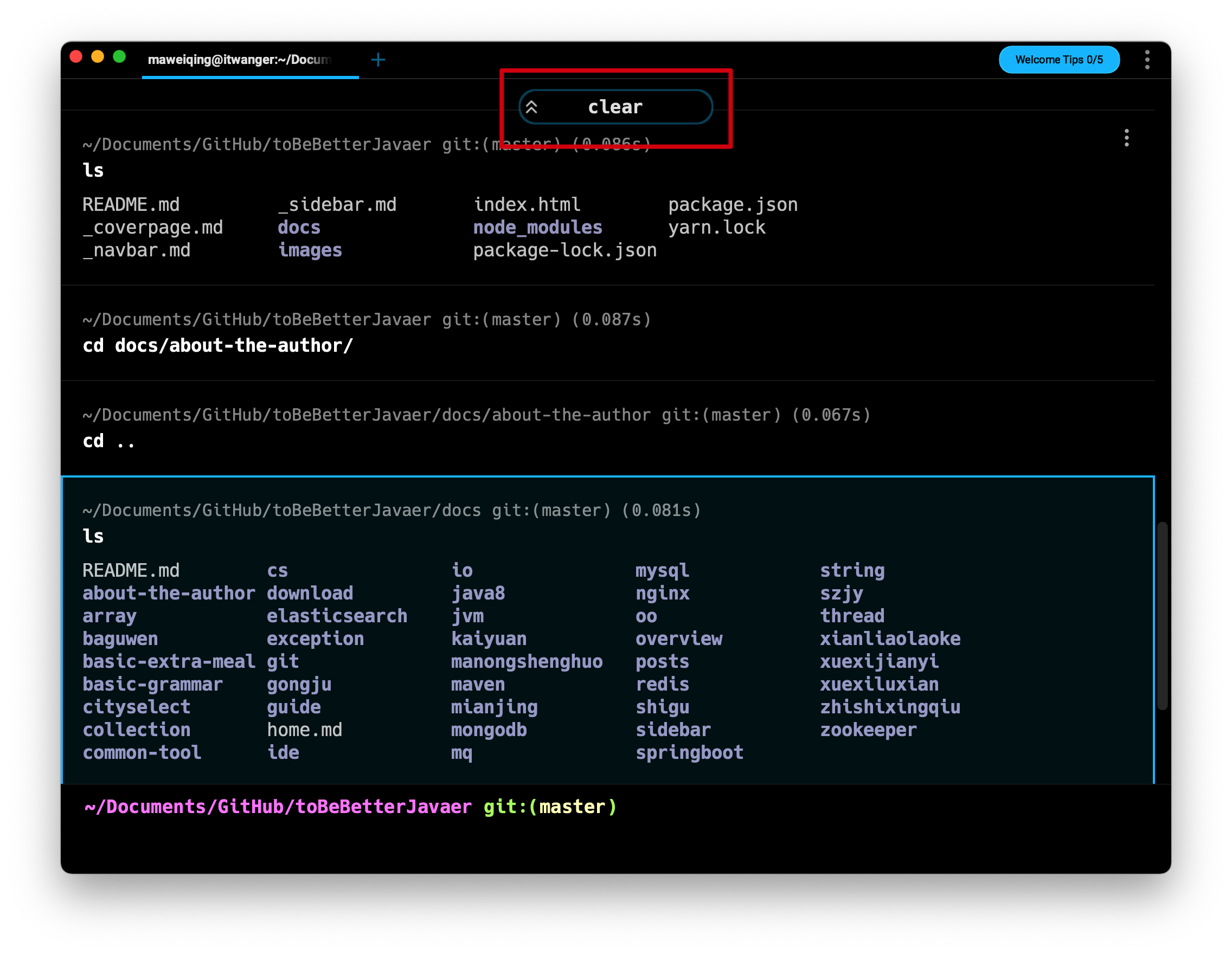 Warp The last command executed will be recorded , There will be a prompt button at the top , When you click , It will automatically scroll to the position where the last command was executed .