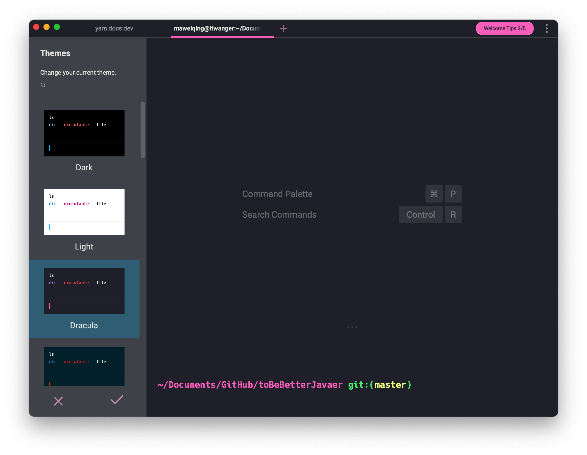 As for shortcut key configuration , If you're not sure which shortcuts you can try , Just click Warp This warm tip at the top 「welcome tips」 That's all right. .