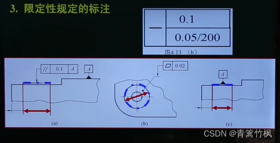 图中0.05/200Indicates that the length is only200The straightness of the straight line is 0.05,the rest of the pictures,Both limit the benchmark to the range of the thick blue dotted line