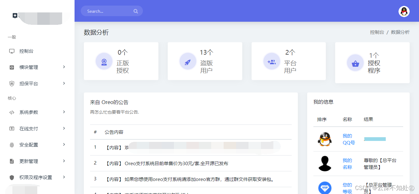 Domain name authorization and verification system v1.0.6 public welfare open source version website source code can be integrated with almost all programs, including your app and computer program, support multi-program authorization, online payment, permission assignment, internal test users, online upgrade,Commercial advertisement, work order system, piracy management, custom user level, custom authorization prompt, authorization procedure, expiration time setting, IP verification, version verification, IP domain name double verification, single domain name verification, general domain name verification, balance card password, authorized card secret, authorized transfer, superior and inferior relationship, remote static resources, multi-user registration, online authorization, authority upgrade, price difference upgrade and other functions.