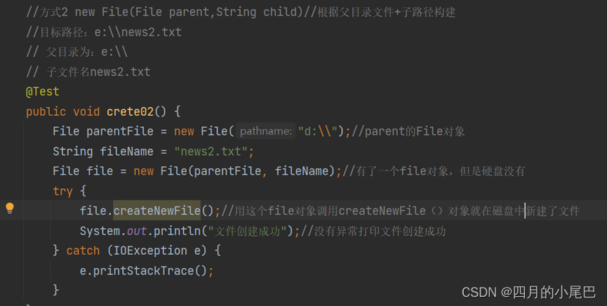 new File(String parent, String child) //根据父目录+子路径构建一个File对象