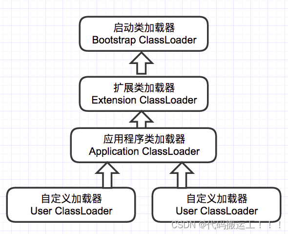 JVM 通过双亲委派模型进行类的加载,当然我们也可以通过继承 java.lang.ClassLoader