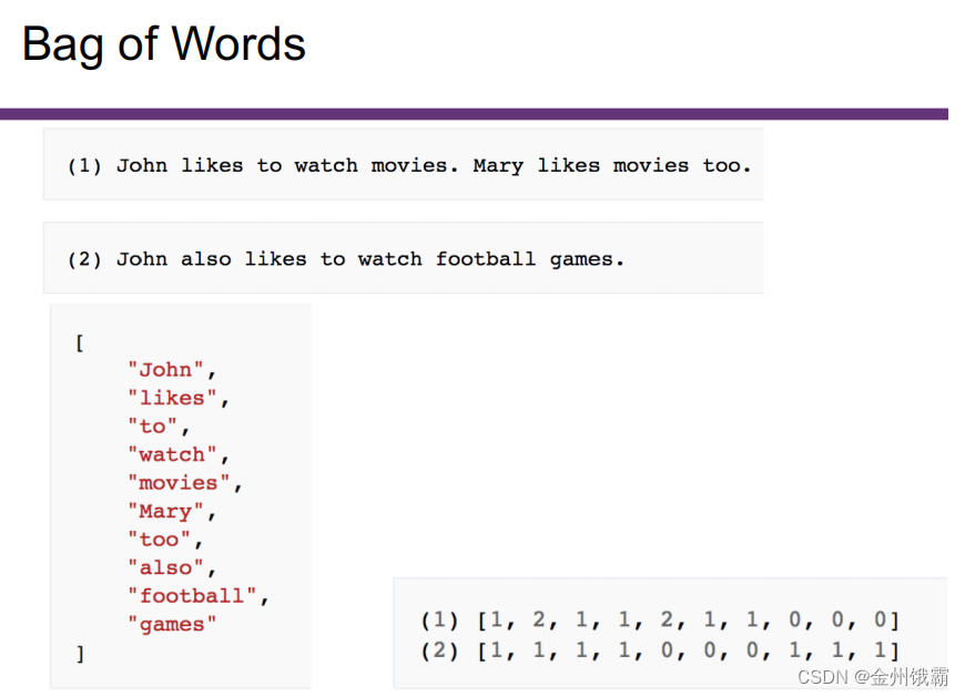 关于词向量我们有一些比较常用的模型,比如one-hot,BOW词袋模型,连续词袋模型(CBOW)和Skip-Gram模型和Word2vec模型。