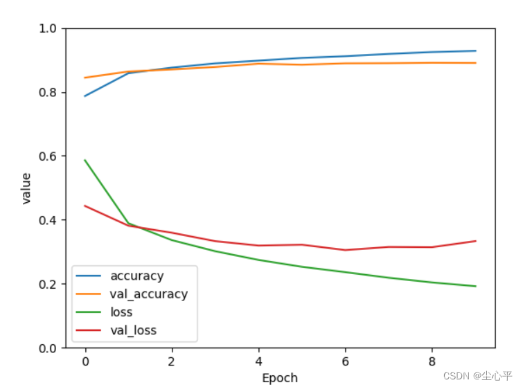 这4The value corresponding to each key happens to be obtained each trainingloss、accuracy、val_loss、val_accuracy,如下图