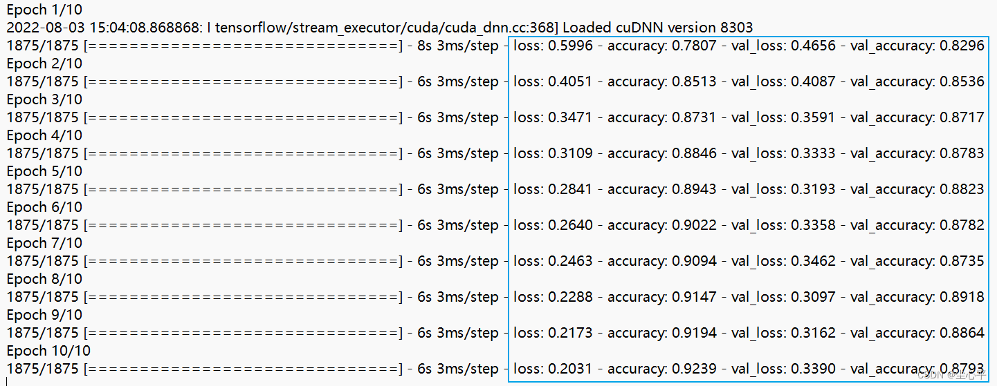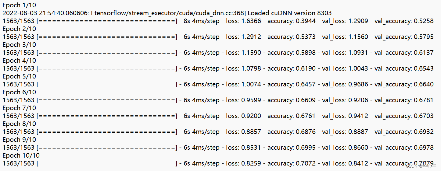 obtained in each round of trainingloss、accuracy、val_loss、val_accuracy是通过The calculation method specified when compiling the network model计算的: