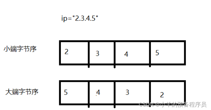 TCP/IP协议规定:网络数据流应采用大端字节序,即低地址高字节。