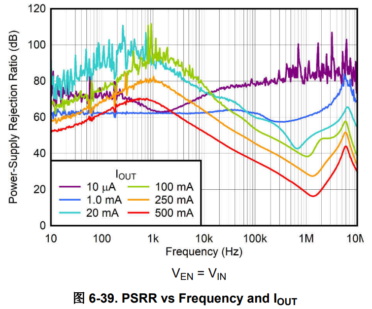 输出电流越大,PSRR越差。