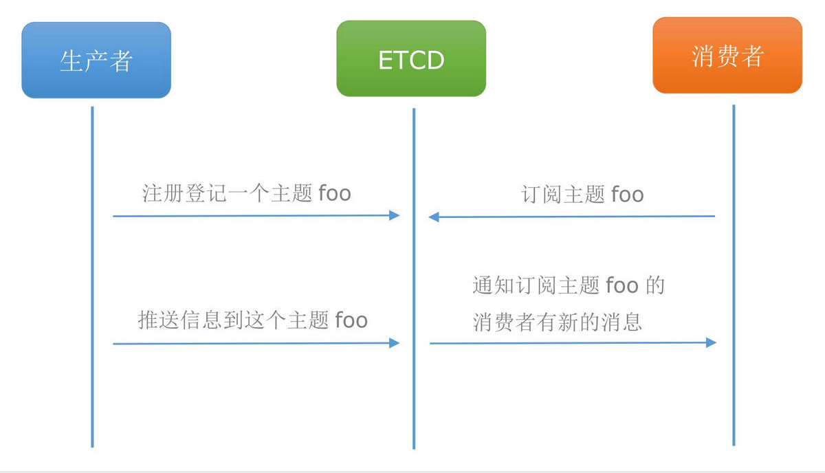 在分布式系统中,消息发布与订阅最适合使用在组件之间通信。使用etcd发布订阅功能可以实现一个配置共享中心,数据提供者在配置中心发布消息,消息消费者订阅他们关心的主题,一旦主题有新消息发布,就会实时通知订阅者,通过这种方式可以做到分布式系统配置的集中式管理与动态更新。