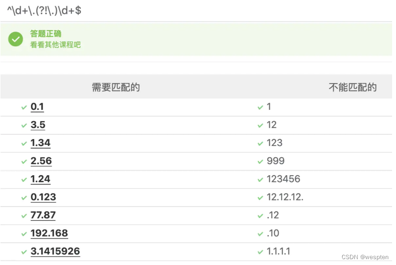 写法二:^\d+\.(?!\.)\d+$ 表示从小数点右边匹配.