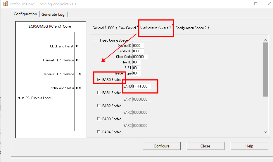 11. In the pop-up PCIe configuration options, only simple modification.Most of them are kept by default, because most of the options are not yet fully understood.Select Enable BAR0 in configuration space-1, fill in FFFFF000, continue to scroll to the bottom, and check Load IDs from ports.As shown below