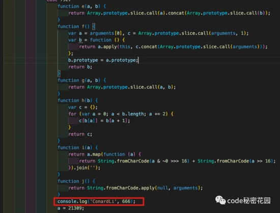 e、f、g、h、j、i 这几个函数都是没有调用的,所以只会执行最后的 console.log(‘ConardLi’, 666); 语句 …