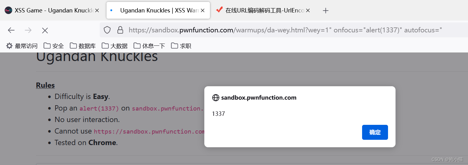 So our input data is:1" οnfοcus="alert(1337)" autofocus=" ,成功了