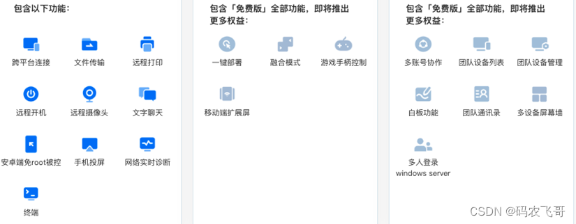 ToDesk的定价明细以及支持功能: