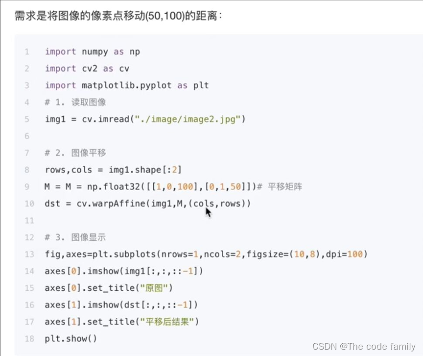 图像平移将图像按照指定方向和距离,移动到相应的位置。