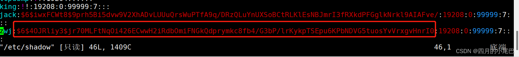 每行的含义:登陆名:加密口令:最后一次修改时间:最小时间间隔:最大时间间隔:警告时间:不活动时间:失效时间:标志