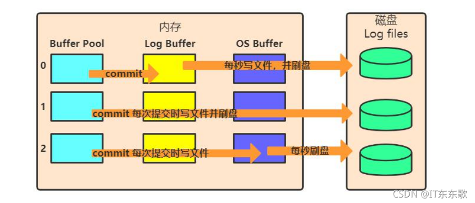 2︰表示每次事务提交时都只把redo log buffer内容写入page cache,不进行同步。由os自己决定什么时候同步到磁盘文件。