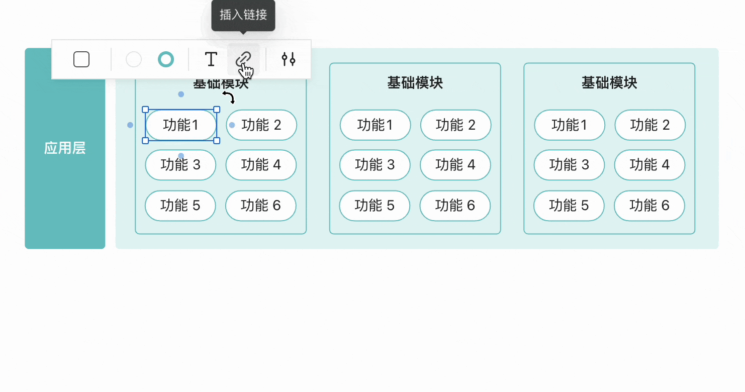 * 拖拽图形控制点调整样式,让功能和模块有所区分。(用同色系的组合会更加美观)