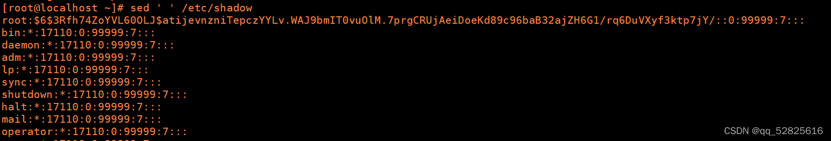 [root@localhost ~]# sed -n 'p ' /etc/shadow