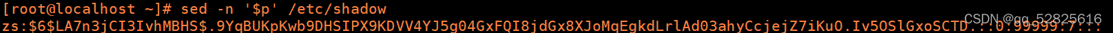 [root@localhost ~]# sed -n '$p' /etc/shadow