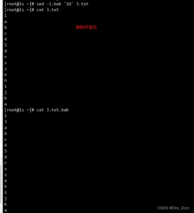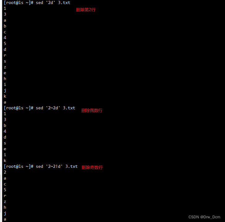 d 删除模式空间匹配的行,并立即启用下一轮循环