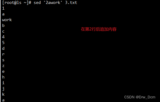 a [\]text 在指定行后面追加文本,支持使用\n实现多行追加