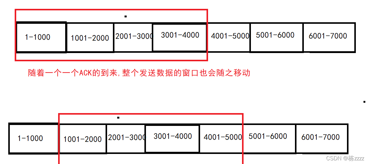 It will send a batch of data at a time like this (1~4000, It's a send 4 Group data , Wait until all these are sent ACk), Wait until 1001 After that, it means that you have received 1~1000, Then send 4001~5000 This set of data , So you don't have to wait for every ACK You can't send... Until your arrival , then 2001 When you arrive, send 5001~6000, Go on like this , It's equivalent to one waiting time waiting for multiple copies ACK, So time will improve