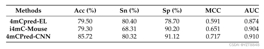 在DNA修饰中,4mC起着重要的作用,它积极参与控制细胞复制和基因表达水平。因此,准确检测这些位点是识别特定生物过程的重要步骤。为了对不同物种的DNA序列中的4mC位点进行分类,不同的研究人员使用ML和NNs创建了许多计算模型[21,23,37–39],但对于小鼠基因组,只有两个基于ML的模型可用,并且没有研究使用NNs来研究这一特定物种。使用NNs,我们提出了一个新的最先进的模型,称为4mCPred-CNN,以提高小鼠基因组中4mC位点预测的准确性。当在独立数据集上进行测试时,4mCPred-CNN的准确性分别比4mCpred-EL和i4mC-Mouse高8.4和5.89个百分点,敏感性高13.03和8.04个百分点,特异性高3.74和3.73个百分点,MCC高16.6和11.7个百分点,AUC高6.9和3个百分点。
