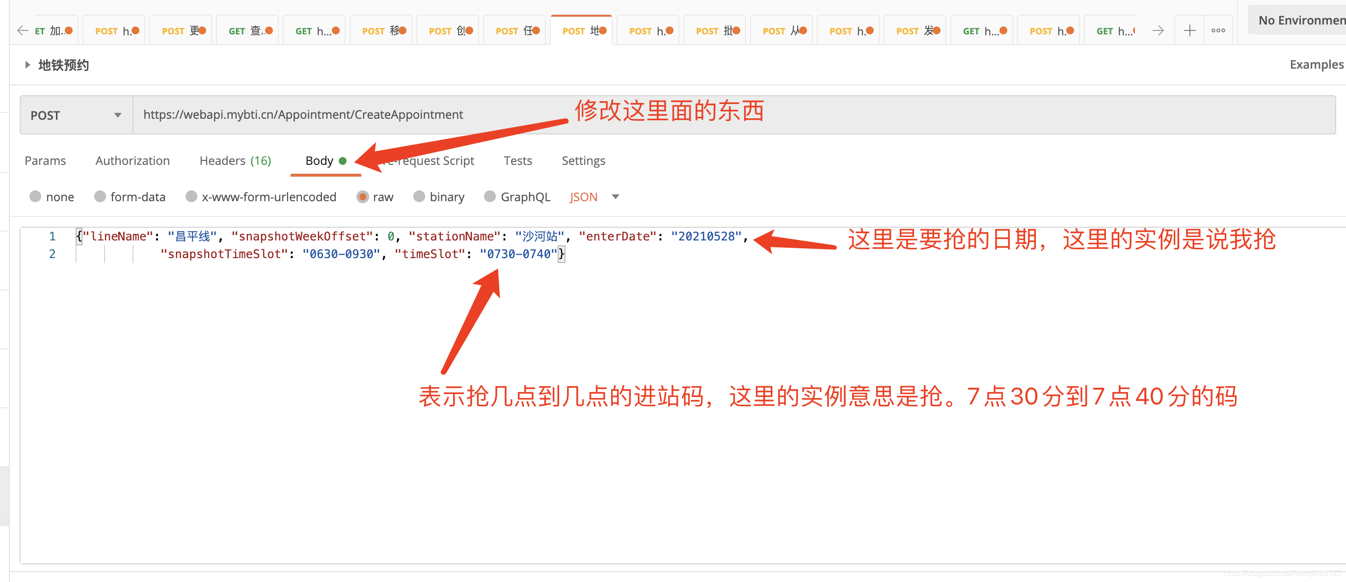 地铁预约Postman脚本使用