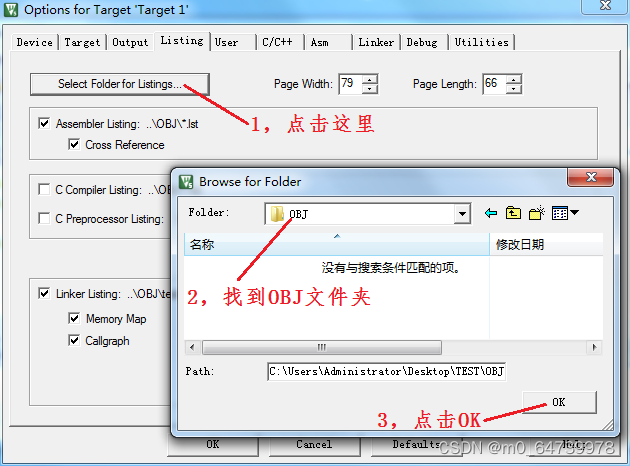 Folder for Listings → 找到 OBJ 文件夹 → 点击 OK ,如图 1.9所示