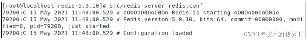 # 意思就是使用 src 目录下的 redis-server 命令,执行 redis.conf 文件