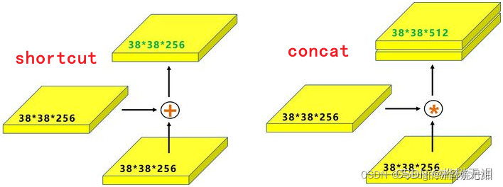 大小通道相同的两层叠加,通道数相加