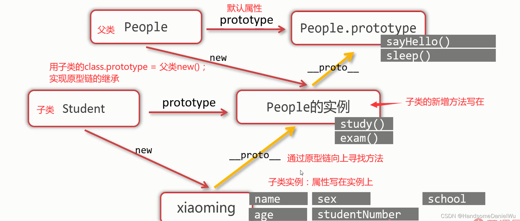 var xiaoming = new Student('小明','男',12,'ABC学校',12345);