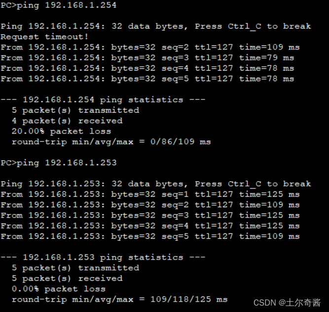 pc1/3 分别ping 通 pc 2/4/5/6