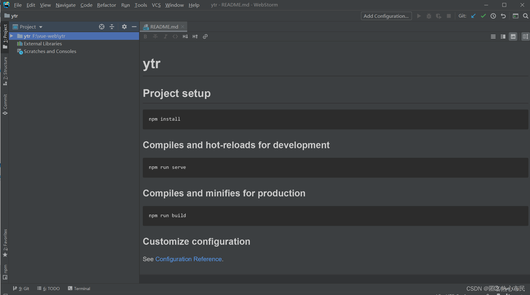 npm install -- 安装项目需要的模块npm run serve --运行项目 nodejs