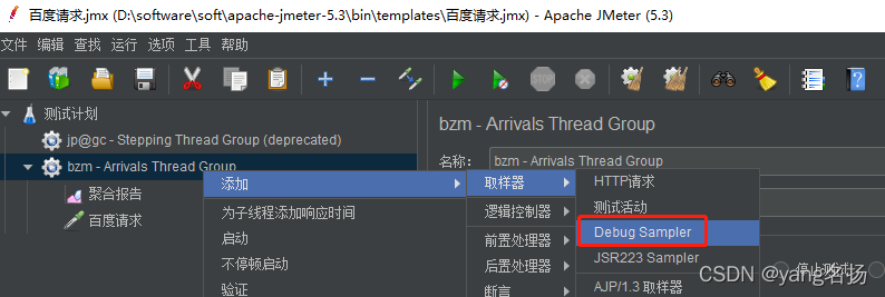 线程组右键-->添加--->Sampler -->Debug Sampler