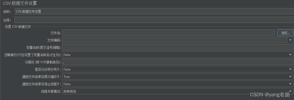 通过Test Plan 或者Thread Group添加CSV Data Set Config。