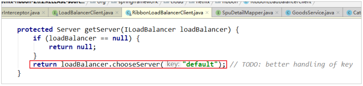 在刚才的代码中,可以看到获取服务使通过一个getServer方法来做负载均衡: