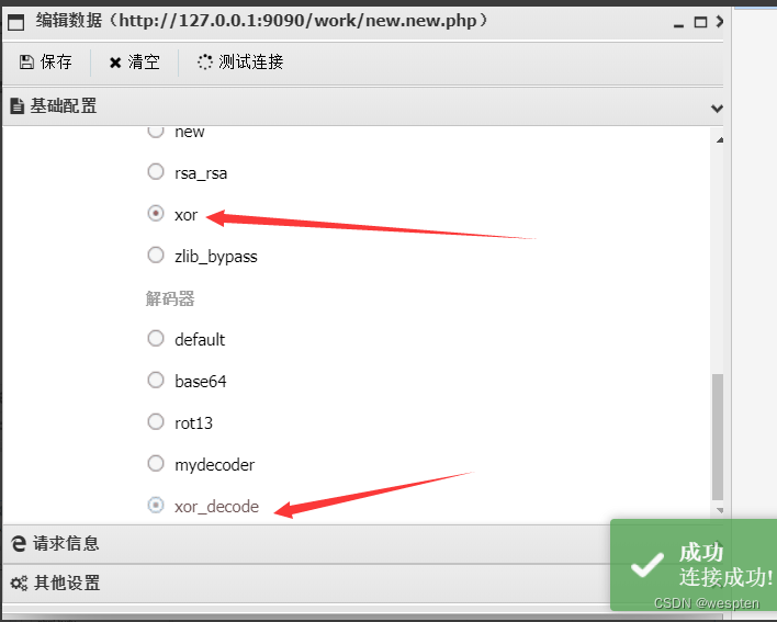 其中encoder为编码方式,默认为空,可选hex或者base64.charset为字符编码,默认UTF-8.Ant sword will send automatically according to user selection.