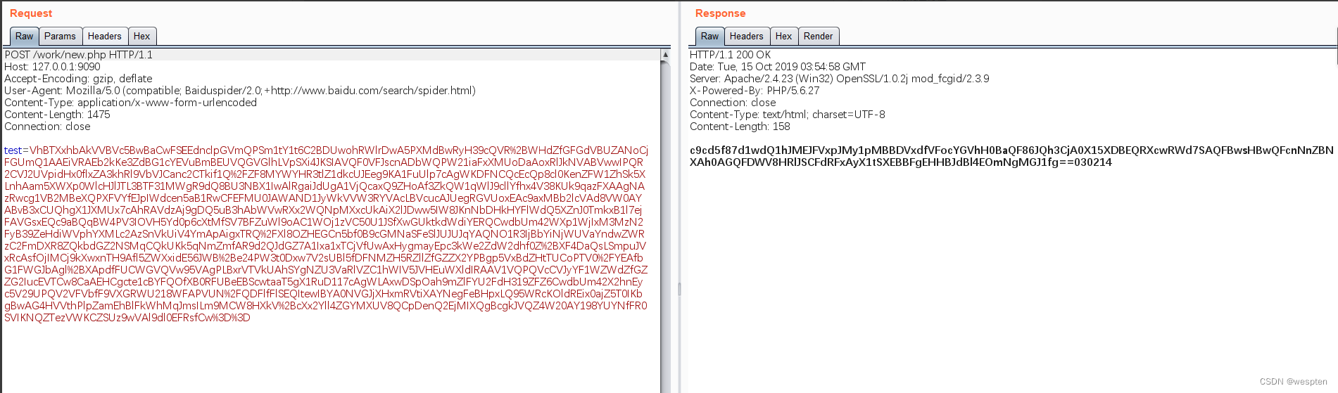 例如你在执行cmd的时候,就一定会发送一个经过base64编码的cmd字符串,这就留下了一个被WAF识别的特征.