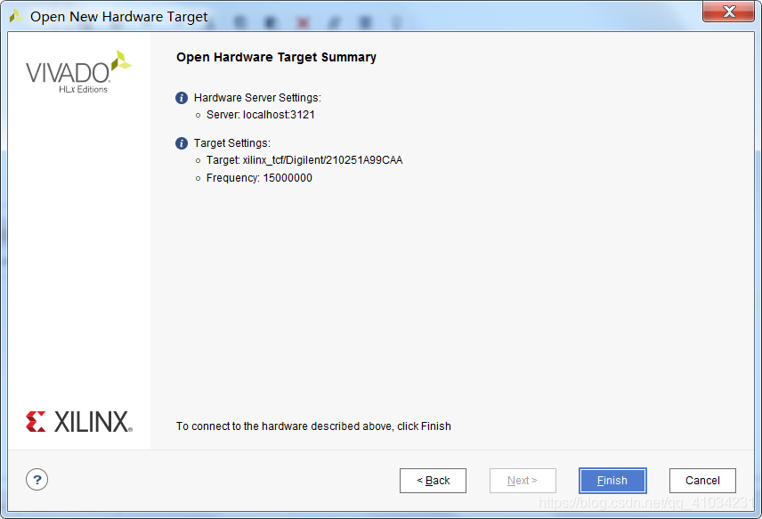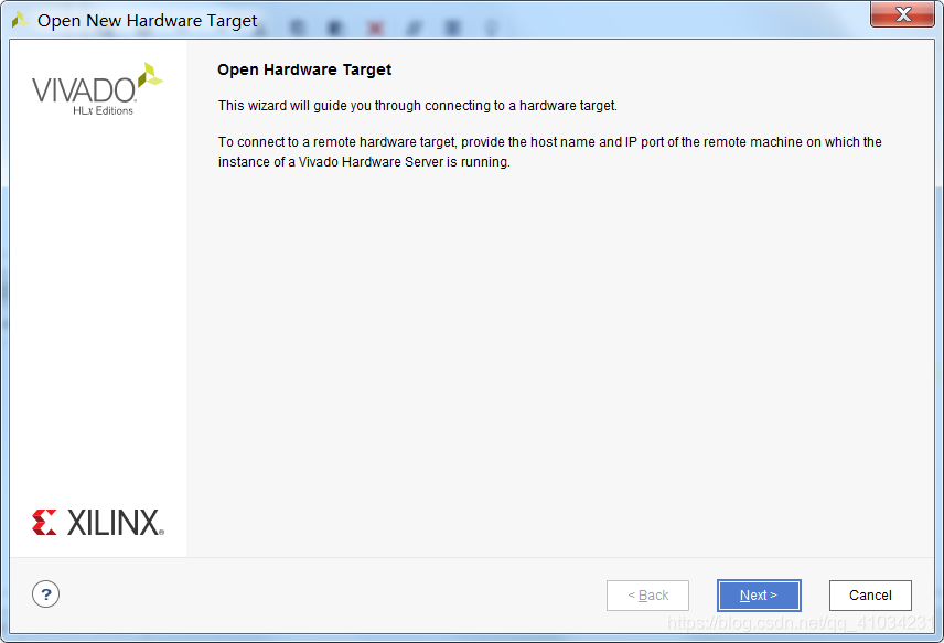 - 点击左边 open Hardware manager,会提示no hardware target is open