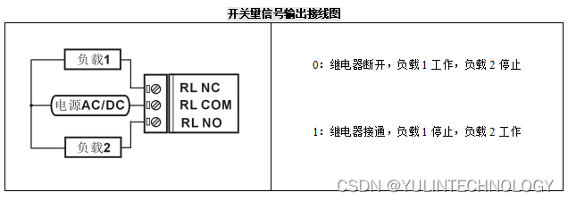 输出类型: C型继电器输出,4通道(DO0~DO3).有常开,常闭和公共端.