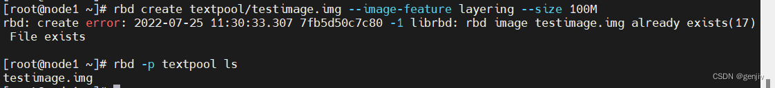 .创建一个RBD的image,image名称为testimage,大小为100M